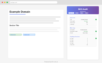 Audits SEOs의 주요 기능에는 상세한 페이지 SEO 보고서를 통한 빠른 평가, 내부 및 외부 링크를 식별하기 위한 링크 분석 및 nofollow 속성과 함께 CSV 형식으로 데이터를 내보낼 수 있는 기능이 포함됩니다. 또한 시각적 링크 강조, Open Graph 및 Twitter 카드에 대한 검증, JSON-LD 스키마를 위한 구조화된 데이터 뷰어를 제공합니다. 이 도구는 HTTP 헤더에 대한 정보도 제공하고 이미지 alt 텍스트 검증을 확인하며 향상된 분석을 위한 사용자 에이전트 전환기도 포함되어 있습니다.
